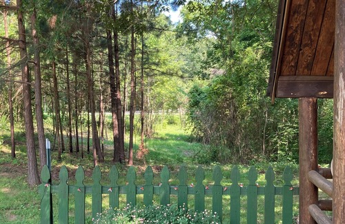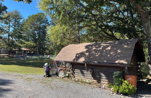 Cabin is open all year round with heating and air conditioning unit. Away from noisy roads, surrounded by oak and pine forests and is part of beautiful, small private campground. It is one simple room made out of logwood which includes two twins and one queen beds, a fridge, small coffee maker, microwave and a ceiling fan.