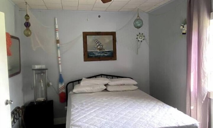 This old time country setting is the perfect place for vacations/gatherings for family and friends. The originally built 1930's cabin sits only yards away from a private 135 acre lake! With 1 bedroom with a full bed, and 1 sofa bed in the living area with a TV, dining area, and a full kitchen with a propane stove. This hill-top cabin is ideal for feeling relaxed! The private lake is great for swimming, kayaking, boating (no gas motors), and playing on the beach. There is a gazebo, swings, communal fire pit, ping pong, a basketball hoop, paddleboats, and kayaks available at no extra charge on the premises. There will be a single-cup Keurig coffee machine, standard condiments, basic toiletries, kitchen essentials, and one charcoal grill available per cabin. - No air conditioners in the cabin. No air conditioners allowed on premises. - No bed linens are supplied. - Make sure to bring any linens, bed sheets (full-size), pillow cases, and any bath/beach towels you may need. - Dogs are allowed. - Cats are not allowed. - If you're bringing a dog we do require that they remain on a leash/tethered at all times outdoors, and if they could remain off the indoor furniture if possible. - Bathing pets is either done in the cabin shower or with the outside hose, not in the kitchen sink.