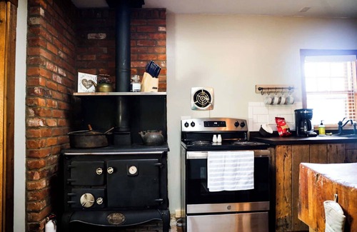 This property does not have central heating or central air conditioning. There is one window unit for AC during the warmer months, and a wood burning stove for colder months. Guests are asked to supply their own firewood.
