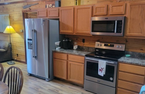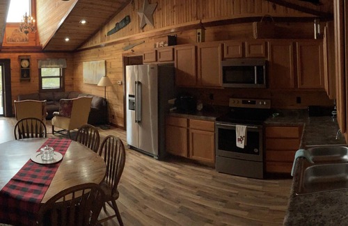 Welcome to our Rustic Cabin in the Ozarks, built from logs cut and sawn here at local mills, a charming timber frame retreat with modern amenities, offering an authentic experience in the Ozark foothills. With 3 bedrooms accommodating up to 6 guests, including a queen bed, two twin beds, and a master bedroom with a queen bed, this cabin provides a cozy haven for your getaway Near beautiful Black River. We offer the option for an additional 6 guests with an onsite rv upon request at an additional fee. The rental also includes access to Black river. The upper sections of the Black River are very clean and clear, with gravel and sand bottom. There are several creeks and streams that are constantly adding fresh water. There are several shut-ins along the way, which add to the beautiful scenery. Anglers will find smallmouth bass at this section of the river. For floters the put-in is at Lesterville Access. Your take-out is at the Route K Bridge which is the last access above Clearwater Lake. We are located Just minutes from numerous federal and state parks (Elephant rocks, Johnsons shut inns, Fort Davidson, Clearwater lake, Suttons Bluff, and Lesterville floating area) just to name a few. We offer a 5 acre property within minutes from miles and miles of Atv/Utv riding trails and allows adequate room for trucks and trailers to stage for your ride. We can help with scheduling activities and would enjoy the opportunity to assist you with a great vacation. Check out Facebook walker vacations ( look for our profile pic)for links to local parks and businesses