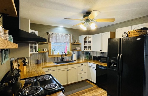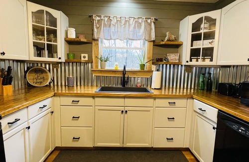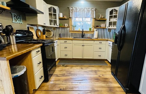 >>>Drive across the creek<<< and escape to the woods in this spacious, rustic cabin on the creek. Giant living room, plenty of cozy seating and attached dining room. Bring the whole family or have a romantic getaway. 15 min from historic Madison.