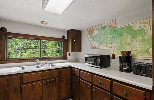 Relax on the porch with the sound of the river flowing nearby, cast a line just steps from your door, or enjoy a quiet evening under the stars. Your four-legged friends are welcome too (up to 2 maximum) – the property features a small fenced area.