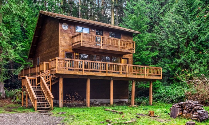 Flagler Retreat is ready and waiting the next time you need to get away from it all. This bright cabin boasts panoramic woodland views that will help you shut out your usual daily stresses. The wraparound deck provides an excellent vantage point for you to spot the local wildlife by day or stargaze by night. You may be secluded, but you won't have to miss the comforts of home; with a full, well-equipped kitchen, you'll be able to prepare homecooked meals before gathering around the antique teak dining table. Enjoy the miles of hiking trails and beachcombing at Fort Flagler, a kayak tour of Kilisut Harbor, or paddleboarding in Mystery Bay. Take in the views of Puget Sound over a salmon burger and milkshake at Fort Flager's Beachcomber Café (closed in the winter). And after a day of adventuring, get cozy back at your retreat with a fire in the woodstove. The loft has two separate sleeping areas and a balcony.