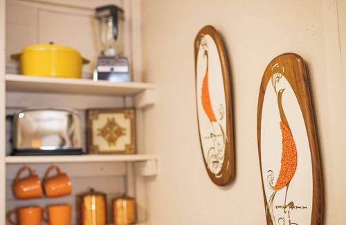 This adorable retro studio cabin sleeps 2 in a queen-sized bed. This rental is available for 30+ day stays. Please inquire with dates for our best rate! There is small sitting area with games and books available for your enjoyment. Enjoy the free Wi-fi and internet TV. The full kitchen with eat in area includes a stove top, microwave, refrigerator, coffee maker, pans and utensils. The large bathroom comes with all necessary linens and starter toiletries.