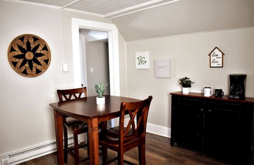 This third-floor apartment has a large, spacious bedroom with a new memory foam queen mattress. Fall asleep streaming your favorite shows on the bedroom smart TV. In the living area, there is a futon that can be utilized for sleeping if needed. However, it's worth noting that although functional, it may not offer the most comfortable experience. High-speed internet and a dedicated workspace are included, a must for those traveling business professionals. Central in location, you will be a five-minute drive to Main Street restaurants and entertainment, the YMCA, Thomas Collge, and Colby College. Fall and winter are great times of year to enjoy the nearby walking trails for hiking and cross-country skiing.