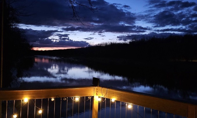 Start your day with a cup of coffee on the unique deck overlooking the St. Louis River. After a day of exploring the area, relax with a cocktail and enjoy the sunset. Every season offers spectacular panoramic views from this amazing deck! Gather for drinks, snacks or meals in the bar/grilling shed, the “Whistle Stop”, or around the campfire ring. Enjoy laying out on the double-wide hammock next to the river. Pass some time with available corn hole and ring toss yard games. Take a leisurely romantic stroll down the rural roads and paths or follow the train tracks and look for agates. Launch your boat from the nearby public landing or fish from the public shorelines and have a picnic! Visiting in winter? Enjoy snowshoeing right from the property; cross country ski trails in nearby Cloquet and Duluth and downhill skiing at Spirit Mountain. Meet around the campfire for s’mores. Relax with Netflix in the cabin to wind down the day or cozy up with a good book.