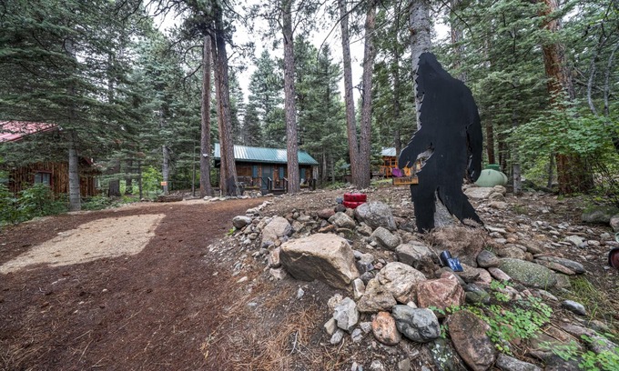 Bigfoot is waiting to welcome you to Bearlane’s cabin on Graneros Creek sitting at the base of Greenhorn Mountain in Rye, Co. Only 45 minutes south of Pueblo, this rustic 2 bedroom, 1 bath cabin sleeps up to 6 people and a dog under 50lbs ($35 Fee) Sitting near a relaxing running creek, in a quiet neighborhood, and among multiple 50’ pines, you will experience many of nature’s greatest gifts such as deer, Abert squirrels, foxes, and on some occasions, bears and mountain lions.