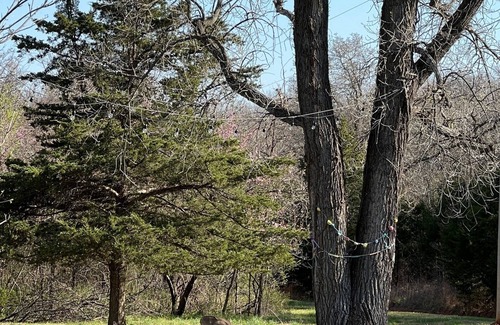 Relax, enjoy and work from home at this unique and tranquil place. Built by hand and just a couple minutes walk from The Ashtanga Yoga Studio. Located just a half hour drive from Norman and OU; 45 minutes from Oklahoma City. Desk, fiber WiFi and 27-inch iMac for your use. This is a 2 bedroom (one upstairs and one downstairs), with two downstair bathrooms, full kitchen, laundry room and lots of outdoor space. Enjoy the nature around, trees, deer, wild flowers, birds, mushrooms, etc.