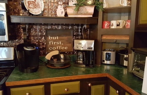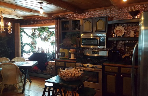 *The cabin has an open floor plan with a beautiful, fully equipped kitchen with all the basics you need for cooking, and modern updated appliances!!