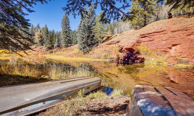 Break into the backcountry at this Dolores vacation rental! With 1 bedroom and 2 baths, this off-the-grid base camp is perfect for outdoorsmen. Big-game hunting and wildlife viewing can be accessed from the on-site double-track trail, which leads straight into the dense ponderosa pines of the San Juan National Forest. Behind the property, the trout-laden Dolores River boasts catch-and-release fishing. In between excursions, refuel back home with a warm meal, in-unit laundry, and board games.