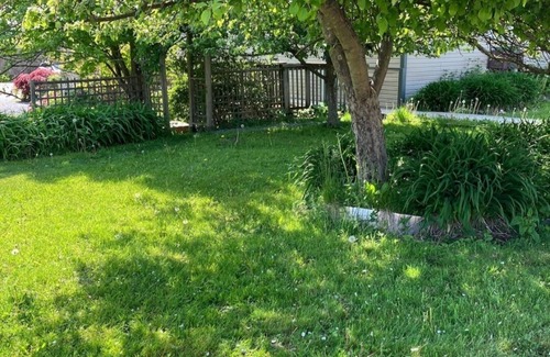 The real gem? A lush backyard oasis. Enjoy morning coffee or evening chats around the fire pit. Let kids and pets roam freely across the grassy lawn, shaded by mature apple trees. In season, you can even pick a few for a fresh snack. The garden is alive with greenery, blooms, and the occasional visit from local wildlife.