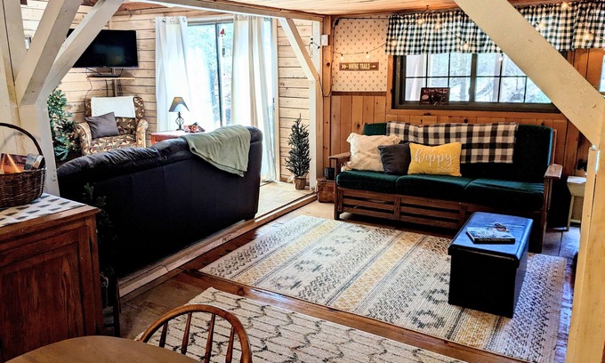 - Peace and quiet in a fully equipped cabin nestled in the woods of the ADKs.