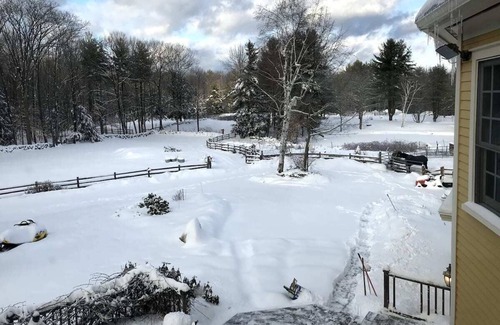 This farm is the real deal-- Horse riding, ATVs, a huge garden, and farm animals abound! Book a room and step into the full country experience: slaughter a chicken, learn to shoot, trap animals, saddle horses, can, use a chain saw, drop a tree, or split wood. To escape the wilderness, this beautiful 1775 house has a new pool, hot tub, sauna, and huge game room. The property abuts NH's largest 10,000 acre state park; and is only an hr to Boston or the mountains, 40 min to the seacoast.
