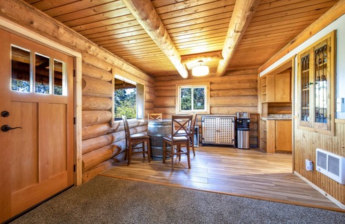 Space, light, and rustic-chic style are waiting to greet guests who book a stay in Rowland Log Cabin. The spacious open floor plan retreat offers up plenty of room and views. Room for everyone in your group!
