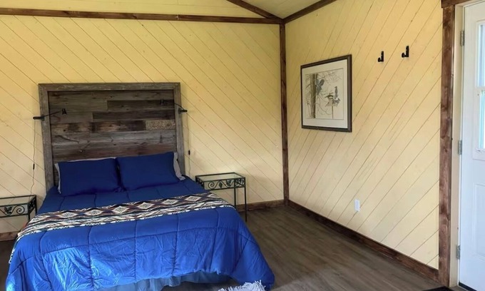 Converted from a chicken coop to a charming bunkhouse, complete with a washroom right next door. Come discover the prairies on this beautiful property, where you can relax and enjoy nature. Have a bonfire under the stars, hike in the hills nearby, or enjoy a barbecue supper. This room sleeps 2, but an extra mattress can be brought in if needed. We have 2 friendly dogs on the premises.