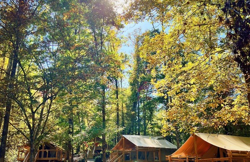 Rustic Glamping Tent nestled in the beauty of the Green River Gamelands! | RV Rental in Saluda