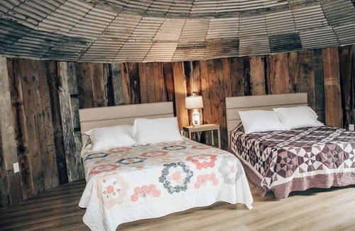 Experience Loose Creek like a local in this cozy grain bin transformed in to a overnight guest house. The lodge features 1 bedroom with a 2 queen beds, a living room with a sofa bed (queen), and a bathroom with a shower. Stay connected with WiFi, stay cool with AC, and stay warm with heating. We hope you enjoy what our place and Loose Creek has to offer.
