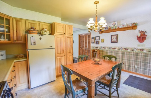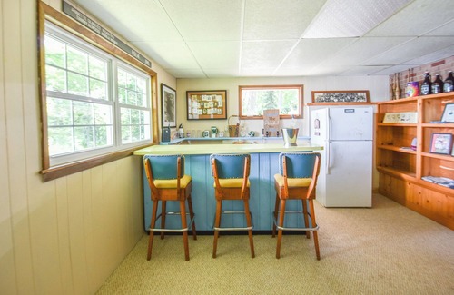 The Rustic Hills Retreat is situated on four lakeside lots, a perfect location for family oriented fun. The home and property allows for lake access with a dock...excellent for boating, kayaking and fishing. Enjoy the scenery while relaxing on the deck, grilling (grills included) or enjoying smores and campfire stories with two bonfire pits. The quaint neighborhood is great for a family bike ride or a stroll around peaceful lakeside properties. Guests will have access to two kayaks (with life jackets), badminton/volleyball nets and equipment, a basketball hoop, bikes, hammock and a cornhole set. The yards and grounds are perfect for outside games, with ample space for tenting. The house is equipped with many amenities and appliances that will support ten guests. The Rustic Hills Retreat has two upper bedrooms containing queen size beds, along with a lower bedroom with a queen bed. A pull out sleeper, futons and daybeds in both the upper and lower living rooms allow for sleeping arrangement for the entire family. The house has a full kitchen and formal dining room. Kitchen amenities include; pots, pans, dishes, silverware, bowls, various kitchen utensils, toaster, microwave, Keurig, a drip coffee maker, air fryer and much more. Also included in the home is a washer and dryer. The lower part of the house has a billiard and bar room, with TV. Included in the lower living room is a large screen TV, air hockey and foosball tables. Come enjoy a home away from home.