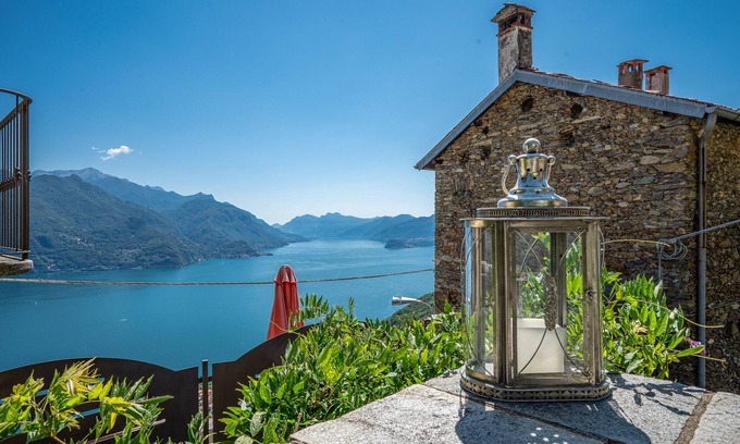 Above the picturesque village of San Siro-Rezzonico with its beautiful castle, good restaurants, lovely lakeside promenade and romantic little beaches, just a few kilometres from Menaggio and the most sought-after sights of Lake Como, is the Rustico holiday home Dolce Vita in the mountain village of San Martino, well-known to Lake Como connoisseurs. You reach your idyllic holiday resort via a serpentine mountain road.