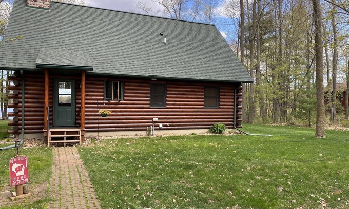 This is the custom built log cabin in the northwoods right on the lake that you have dreamt about. This beautifully crafted 1800 square foot log home has a loft bedroom with a queen bed on the upper level, 2 bedrooms with queen beds on the main level, and 2 single beds and a futon in the basement. There are also 2 full bathrooms.