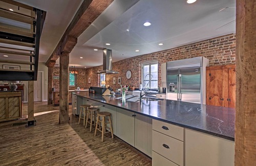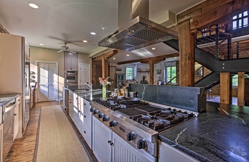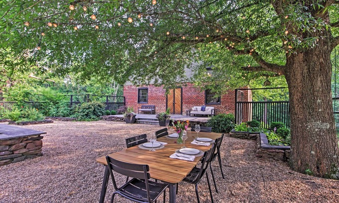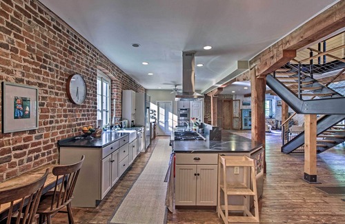 Warren Mill has been beautifully renovated to blend modern comforts with the home’s original 1792 charm. Nestled beside a railroad track adding to the historic ambiance, the vacation rental features exposed beams, architectural stairways and brick walls. You’ll have access to the 3-bedroom, 2.5-bath house as well as the 2-bedroom, 1-bath cottage. Spend your days relishing the beautiful outdoors, sipping a brew at James River Brewery, or dipping into the refreshing waterfall behind the property.