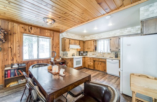 This home has all the perks you will need while relaxing in the Sierras. The wood stove keeps the home nice and cozy no matter the weather, while the large, upper deck is the ideal place to take in the sights and sounds of the forest. You will also have a full kitchen that comes equipped with a single K-Cup brewer and coffee pot, air fryer, french press maker, and griddle, along with a gas grill to prepare wonderful meals. A special treat this home offers is a private, dry sauna, and massage chair in which you can relax and soothe your aching muscles after a long day hiking, swimming, or skiing. Enjoy your favorite playlists and movies using the home's premium surround sound system. Each bedroom and bathroom also features its own Nest thermostat for personalized temperature settings, and a 60" TV with streaming and Alexa clocks for music and white noise.
