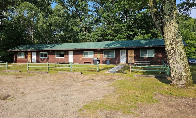 The Coho Suite is left half of the of the Rustic Hook lodge duplex. A 4 season rental. It is 2 bdrm, 2 bath Suite, with a fully stocked kitchen. One bedroom has two queen beds, and the other bedroom has two twin over Full bunk beds. Large attached Deck