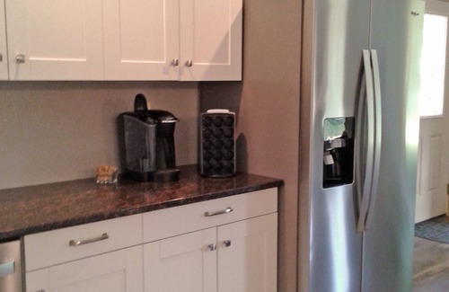 Main floor has a fully equipped kitchen with granite counter tops and all new stainless appliances, island and dining that seats 9 people easily.