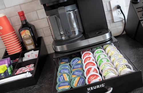 ✔️ Fully equipped kitchen with Keurig, drip coffee maker, teas, hot chocolate, and all essentials