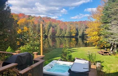 Rustic lakeside cottage with spa is located in St-Adolphe-d'Howard. Rustic lakeside cottage with spa provides accommodation, featuring Balcony/Terrace, Sports/Activities, Fireplace/Heating, among other amenities. This Ski Chalet features Balcony/Terrace, Sports/Activities, Fireplace/Heating, to make your stay a comfortable one.