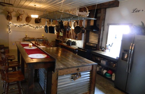 - Rustic Cabin with modern amenities and 1 acre stocked Fishing Lake !