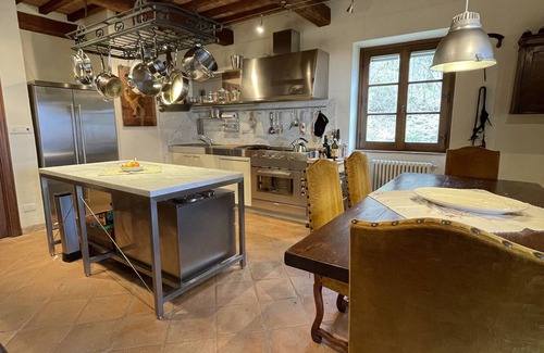 A luxurious retreat in the tranquil woods of the Tuscan countryside away from everything, secluded but only a 15 minute drive from the lively town of Arezzo, ideal for families and groups of friends. This artfully restored Tuscan farmhouse in the Casentino Valley boasts meticulous attention to detail with modern appliances and historical accents surrounded by 40 hectares of forest. (Please note that the last few kilometers to arrive at the house are gravel, and not always in perfect condition. For your comfort and ease, we recommend a vehicle that sits higher to the ground - a Fiat Panda or the like works like a charm).