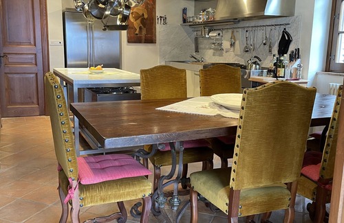 The chef's kitchen is beautifully outfitted, with modern Boffi appliances, includes all sorts of tools to ensure a delightful culinary experience to discover the flavors of Tuscany. A large table is the centerpiece of the dining area, but the best dining is under the stars.