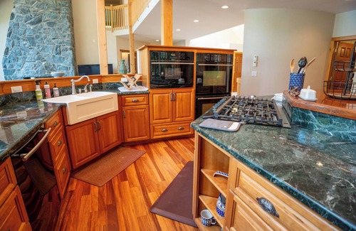 porches. Outfitted with all of your kitchen needs - double oven, farm sink, microwave, toaster oven,