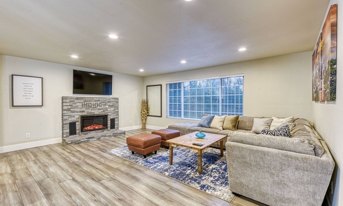 Stunning New Mid Century, Modern theme w/ a farmhouse twist! This spacious, luxurious home is 3140 sq ft. 6 large bedrooms / 3 bath w/ a 2nd kitchen downstairs. Open Concept and wonderful for groups! Disney+, HBO, and Netflix available for family nights! Portable AC units.