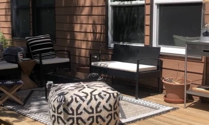 South-facing deck provides both sun and shade throughout the day.
