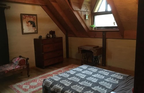 Enjoy the rustic ambiance and romance of a hand crafted mud brick and reclaimed timber-dwelling . Located in a quiet court with secluded private gardens. Only a stones throw from local cafes, pub and shops. Be stunned by the architectural detail as you enter the front door. Huddle by a wood fire in a cosy lounge when mountain mists surround , relax in the sun lounge watching birds in towering gums through full height windows, enjoy a moon rise through French doors of the mezzanine lounge. A fully equipped cottage style kitchen may tempt you to relax in for your short stay. Wineries cafes and attractions of Healesville and the Yarra Valley a short drive through countryside and mountain forests. Surrounded by National Parks with long bush walks or a short stroll to a waterfall. A true getaway experience.