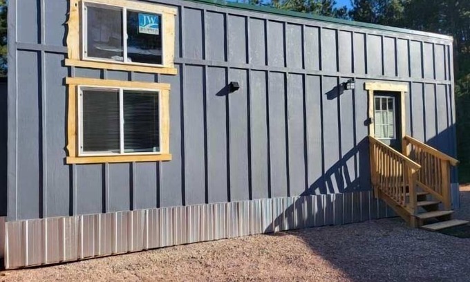 Welcome to the Black Hills! This charming, rustic tiny home nestled in nature, boasting a cozy one-bedroom layout with a loft for additional space or the littles (loft has weight limit of 500 lbs) awaits you! The kitchen is equipped with all the essentials. You'll find modern amenities like TVs, hvac and reliable WiFi, ensuring comfort and convenience in this quaint retreat. Memories are sure to be created here for years to come. This has 4-5 steps to enter.