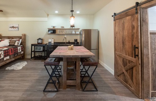 - Riverfront home with firepit, large deck, tubing rafts, & views