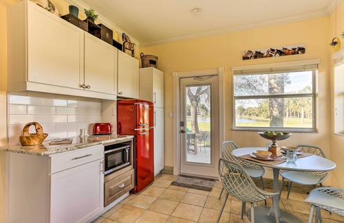 Rest and relax away from city lights at this studio vacation rental in Palm City, Florida. This rustic getaway features 1 queen bed, 1 full bathroom, and Smart TVs to create a cozy atmosphere. Walk out onto the patio to find an outdoor dining area, a gas grill, and a lake view. Sitting on a 15-acre horse farm with a garden and gazebo, this country escape will offer a peaceful trip for you and a loved one. Visit Shepard Park and Atlantic Ridge Preserve State Park for more outdoor fun.