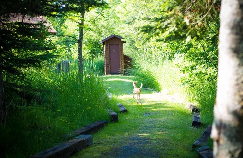 - The cabin is clean, comfortable, and elegant, but still quite rustic. The cabin is available year-round, with a propane fireplace for your main source of heat. It has electricity, but no running water. In the kitchenette is a water dispenser for washing & drinking. Adjacent to the cabin is your own private low-odor outhouse that has a little heater and a light you can turn on from inside the cabin. Just a one-minute walk from the cabin is the main lodge, which has public restrooms for showers and flushing toilets.