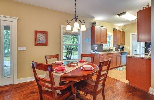Nestled near top attractions such as the serene Lake Barkley and the beautiful Land Between the Lakes National Recreation Area, this 2-bedroom, 2-bathroom vacation rental cottage offers a serene retreat for outdoor enthusiasts. Explore hiking trails, go fishing or boating on the lake, and immerse yourself in nature during your visit to Cadiz. After your adventures, the spacious deck invites you to relax with a drink in hand while enjoying some wildlife sightings before migrating to the fire pit.