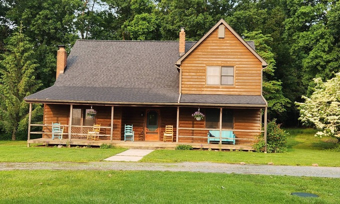 Nestled within the serene landscapes of Codorus State Park, Hazel Glenn Farms offers a unique rustic experience in a charming log home adorned with vintage antiques. Just 30 minutes from historic Gettysburg, an hour from the picturesque Amish Country in Lancaster County, and approximately 1.5 hours from Washington, D.C and Baltimore, our location provides the perfect blend of tranquility and accessibility.
