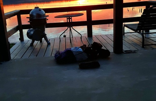 Our rustic cabin will take you to a simpler time, with all modern ammenities. There is a boat launch on the property with room to park your boat and vehicles. Full kitchen with charcoal grill on outside deck. For our longer stay guests there is a waher/dryer for your convenience. Sit and sip your morning coffee and watch the beautiful sunrises and sunsets over the water