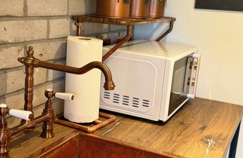 Rustic Roost is a warm and stylish cabin where you can relax with views of Ayrshire countryside. The spacious cabin has a king size bed; fantastic shower; proper heating (perfect for Scottish weather); air conditioning unit; kitchenette (with microwave, air fryer, fridge freezer, kettle, toaster); Smart TV on a swinging arm mechanism; complimentary WiFi and a free parking. You’ve got peaceful surroundings (yet the town is a few minutes drive); countryside views; and top-end furnishings.