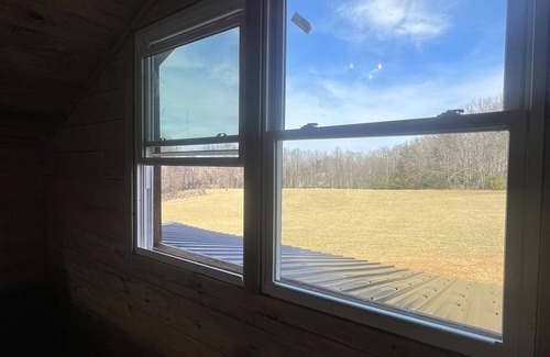 The Tobacco barn is Located at the end of a dead end gravel road. The cabin is easily accessible with any vehicle, but do not be shocked by an occasional puddle after rain showers. Relax on our massive covered porch and soak in the views of rolling countryside. Enjoy watching wildlife visit our feeders visible from the deck and windows of the loft area. Feel free to walk or bike freely and enjoy the country lifestyle. We recommend gazing at the stars and listening to the sounds of nature but dont be surprised if you hear coyotes or even see a stink bug. Welcome to the country, relax and embrace nature at its finest.