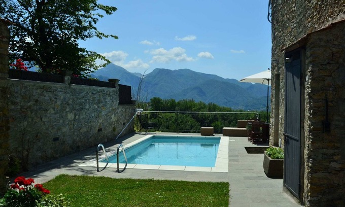 Tucked away in the picturesque countryside of Fivizzano, this pet-friendly cottage offers a serene escape for up to six guests. The property features a private garden, a swimming pool (6 x 3 m, open May–September), and a spacious kitchen with a fireplace, oven, microwave, dishwasher, and washing machine. The ground floor includes a hallway with a TV and DVD player, a sitting room with satellite TV, a fireplace, and a stereo unit, and a bathroom with a washbasin, toilet, and bidet. The first floor houses a bunk-bed bedroom and a bathroom with a shower, while the second floor offers two double bedrooms, ensuring a comfortable stay for families or groups.