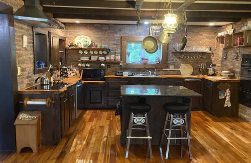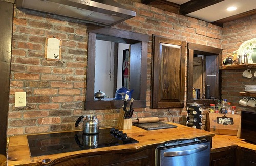 The kitchen is fully stocked with nice assortment of pots and pans as well as plates, glasses, and silverware. There is also plenty of counter space if you feel like cooking. If you are not serious about cooking a meal, there are a number of options just a few steps away at The Inn (right across the street) or at Bernie's just down the street. You may, if you prefer, drive to The Belfry just up the mountain. Either way, we will leave some bottled water in the fridge to help you get settled. For your convenience, the kitchen is equipped with a DW, LP oven, electric cook top, and a microwave. There is a spice rack, a professional coffee grinder if you prefer to bring your favorite flavor of coffee beans, and a coffee maker. There is a Hearthstone Pizza Oven and large stainless grill outside.