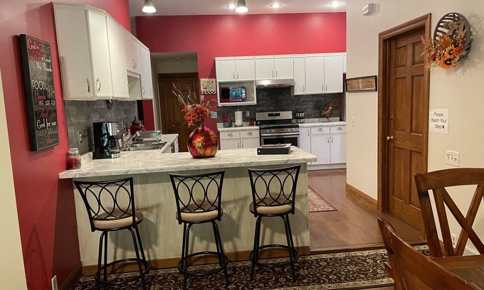 Our private cottage features a fully equipped kitchen, stainless steel appliances, microwave, dishwasher, washer & dryer, 2 bedrooms, one with a king bed,the other a queen, 2 pull out sofa beds, one full size and 1 queen, 1 air mattress, 1 full bath with tub and shower, all linens provided, free WIFI, 2 electric fireplaces with 2 Roku flat screen tvs, central air, heat, coffee pot, pots and pans, dishware and linens, fire pit, charcoal grill, front porch swing, and an indoor/outdoor kennel for your canine family member, situated on 20 acres with trails, on a dead end road. Tired of the rat race of the city life? You will love the peaceful, serene location. Conveniently located 5 miles from Devil's Head Ski & Golf Resort, 5 miles to Cascade Mountain, 20 miles to Wisconsin Dells,so many attractions nearby-Devils Lake State Park, Circus World Museum,Ho Chunk Casino,Waterparks, The Outlet Center with shopping galore, to name a few. Pack up your family and vacation here, in your own private home! Please note: there is a $75 fee per pet, per stay.