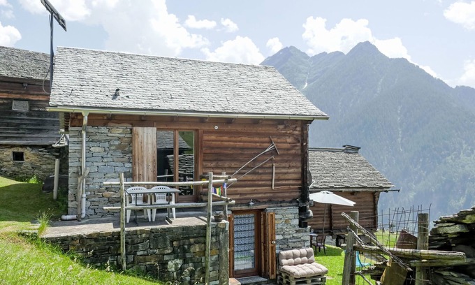 Dagro 19 km from Malvaglia: Important: Power is supplied by a solar panel. Stove is gas-operated. Wood boiler. Electrical appliances over 250W can not be operated. Note: Mountain road 13 km from Malvaglia real time 30 minutes. >> The use of the access road to the Malvaglia Valley has become subject to a fee as follows: CHF 7.00/day CHF 15.00/week CHF 30.00/month. The fee can be paid either in cash with CHF or by credit card. The toll machine is located in Caslou, right after you cross the bridge. Cosy, simple single-family house "Rustico Bel Panorama", 1'400 m a.s.l.. In the district Valle di Blenio, in a quiet, sunny position, in the countryside. Private: natural garden. Garden furniture. 7 km long narrow motor access (4 km via unmade road, mountain road). 10 m steep footpath to the house. Parking on the premises. Supermarket 20 km, restaurant 500 m, bus stop "Malvaglia Chiesa bus 131-140" 19 km, railway station "Biasca FFS - SBB" 25 km. Walking paths from the house 10 m, cable car 500 m. Nearby attractions: Castelli di Bellinzona, UNESCO, Castello di Seravalle, Chiesa Negrentino, Archivio Doneta, Museo della Valle di Blenio, Monte Tamaro, Splash & SPA. Well-known lakes can easily be reached: Lago di Luzzone, Lago Retico, Lago Maggiore, Lago di Lugano, Lago Ritòm. Hiking paths: Val Malvaglia, Valle di Blenio, Nara,Lucomagno, Campo Blenio, La Greina. Please note: car recommended. Animals in the neighbourhood.